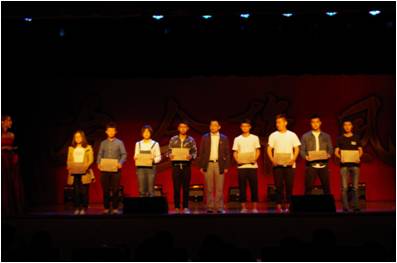 生命在于挑战,梦想在于突破,过去的一年里冶金人在体育方面表现突出,在各项体育赛事中斩获颇丰。校运会优秀集体项目五人持杆跑参赛运动员深情激昂朗诵后,主持人宣读了我院特为在本届校运会各方面表现优异的团体和个人而设立的奖项,包括最佳团体奖、精神文明奖、成绩优秀奖、最佳训练奖和最佳组织奖。以上奖项的颁发让在场的每位冶金学子热血沸腾,重新点燃了内心中集体荣誉的熊熊热火。运动会赛前训练、赛场拼搏、赛后狂欢的精彩视频,也让阵阵斗志和缕缕感动萦绕在会场的角角落落。