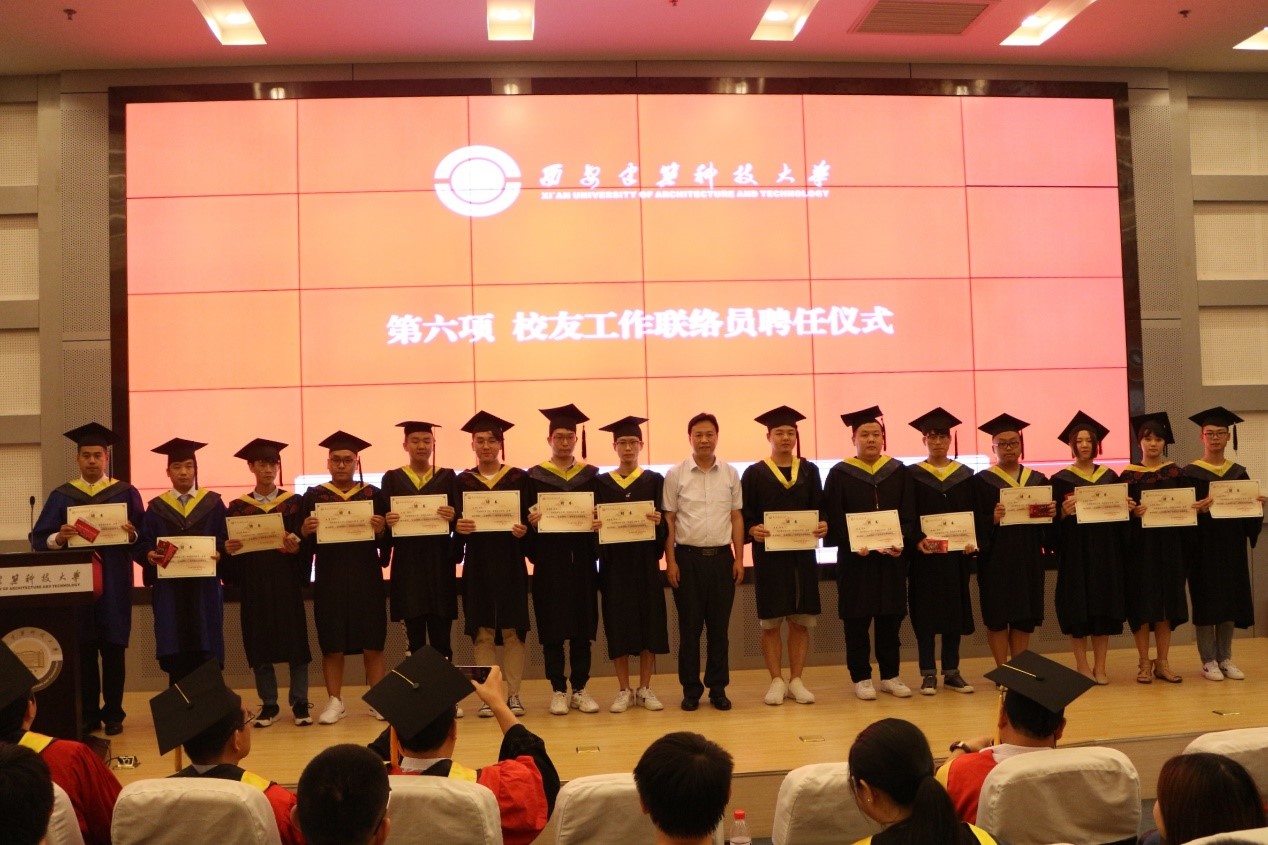 党委书记马立建依次为任海涛、陈鹏昊等15名优秀毕业生颁发校友工作联络员聘书并合影留念。