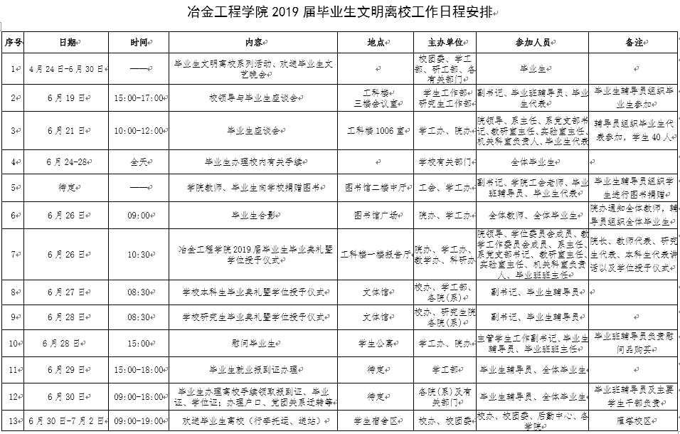 网讯(通讯员 徐瑞朝)为确保毕业生文明离校工作顺利开展,发挥优秀毕业生的榜样作用,营造和谐、健康、文明、感恩的离校氛围,5月中旬,我院学生工作领导小组召开毕业生文明离校工作专题会议,安排部署2019届毕业生离校相关工作,在此基础上,制定了详细的实施方案,在毕业生离校前组织开展了丰富多彩、健康向上的毕业生文明离校系列活动。