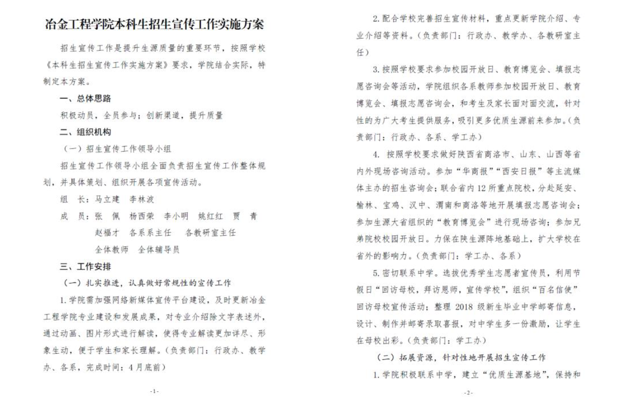 组建了2019年招生宣传工作领导小组,本着积极动员,领导组织带领,全员参与的工作思路,开展了2019年招生宣传工作。