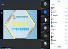 接下来,21家参会企业依次通过PPT或视频形式进行线上宣讲,并就参会学生提出的工作内容和工资待遇等相关问题进行了详细的解答,使应聘学生对未来的工作和规划有了更清晰、更深刻的认识。现场宣讲结束后,用人单位将与应聘同学通过“西建大就业在线”公众号进行为期3天的网络洽谈。