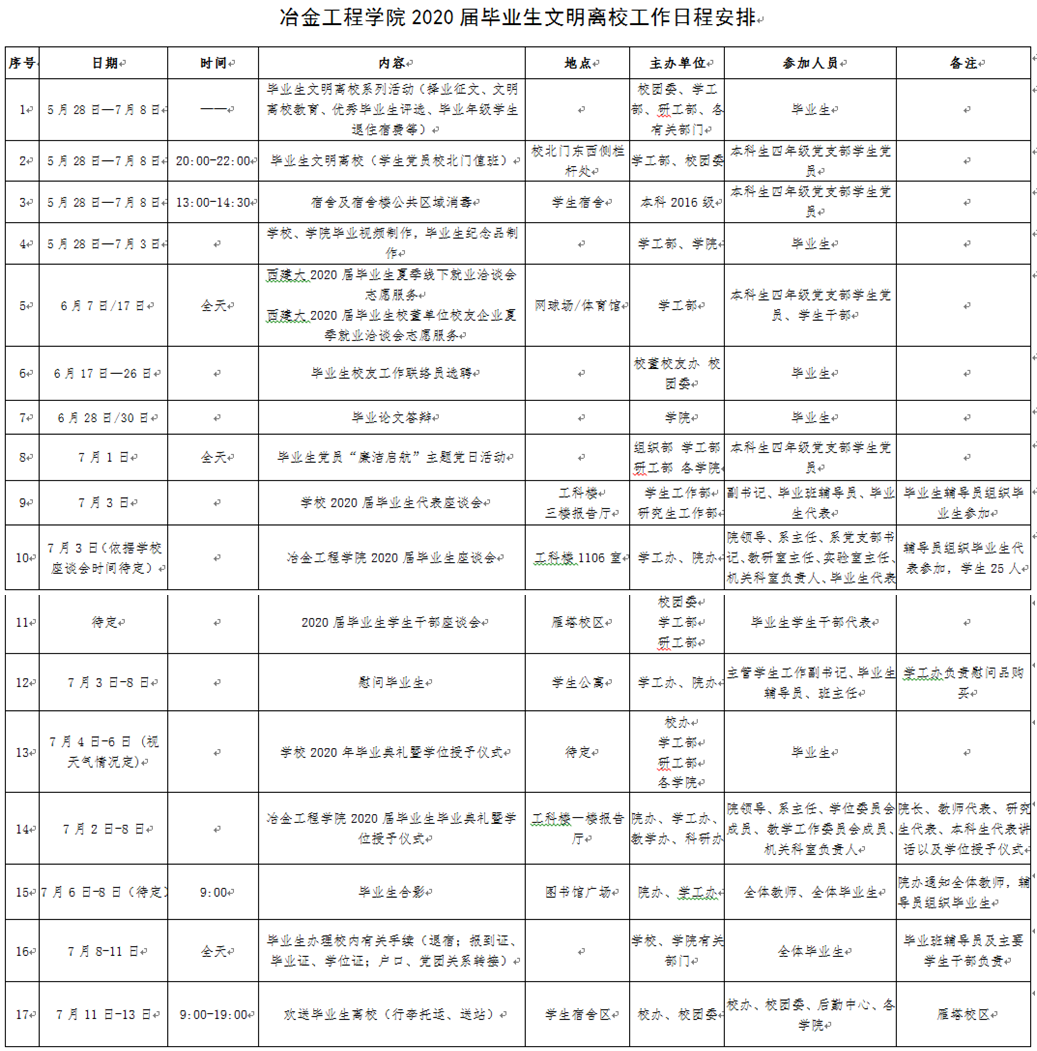 制定了详实的2020届毕业生文明离校工作实施方案,在毕业生离校前组织开展了丰富多彩、健康向上的毕业生文明离校系列活动。