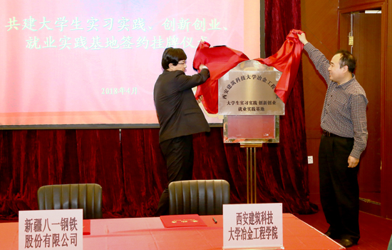 与新疆八一钢铁股份有限公司大学生实习实践、创新创业、就业实践基地签约揭牌仪式在乌鲁木齐好西部酒店举行。