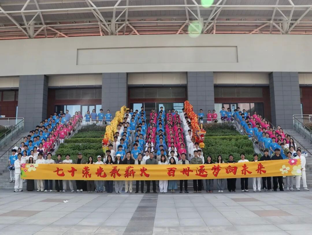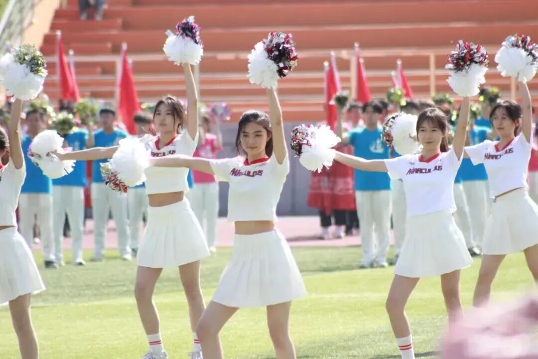 的表演正式拉开序幕。学子们手持彩穗花球意气风发、阔步登场,尽显蓬勃朝气;双龙威风盘旋、气势昂扬,与青春身姿交相辉映。