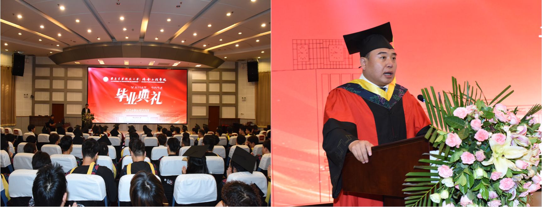 院长李林波在典礼上致辞,他向圆满完成学业的全体毕业生表示祝贺!向毕业生的师长、父母致以崇高的敬意!对毕业生在校期间取得的各项成绩表示肯定。在即将告别之际,他希望全体毕业生继续传承和弘扬“爱国奉献、艰苦奋斗、实干担当”的冶金精神,不断探索未知领域,将创新理念转化为行动,为社会的进步贡献自己的力量。并寄语毕业生:一是要挺膺担当,激发“敢为天下先”的青春勇气;二是要追求卓越,保持“会当凌绝顶”的青春自信;三是要不断学习,涵养“滴水能穿石”的青春定力。