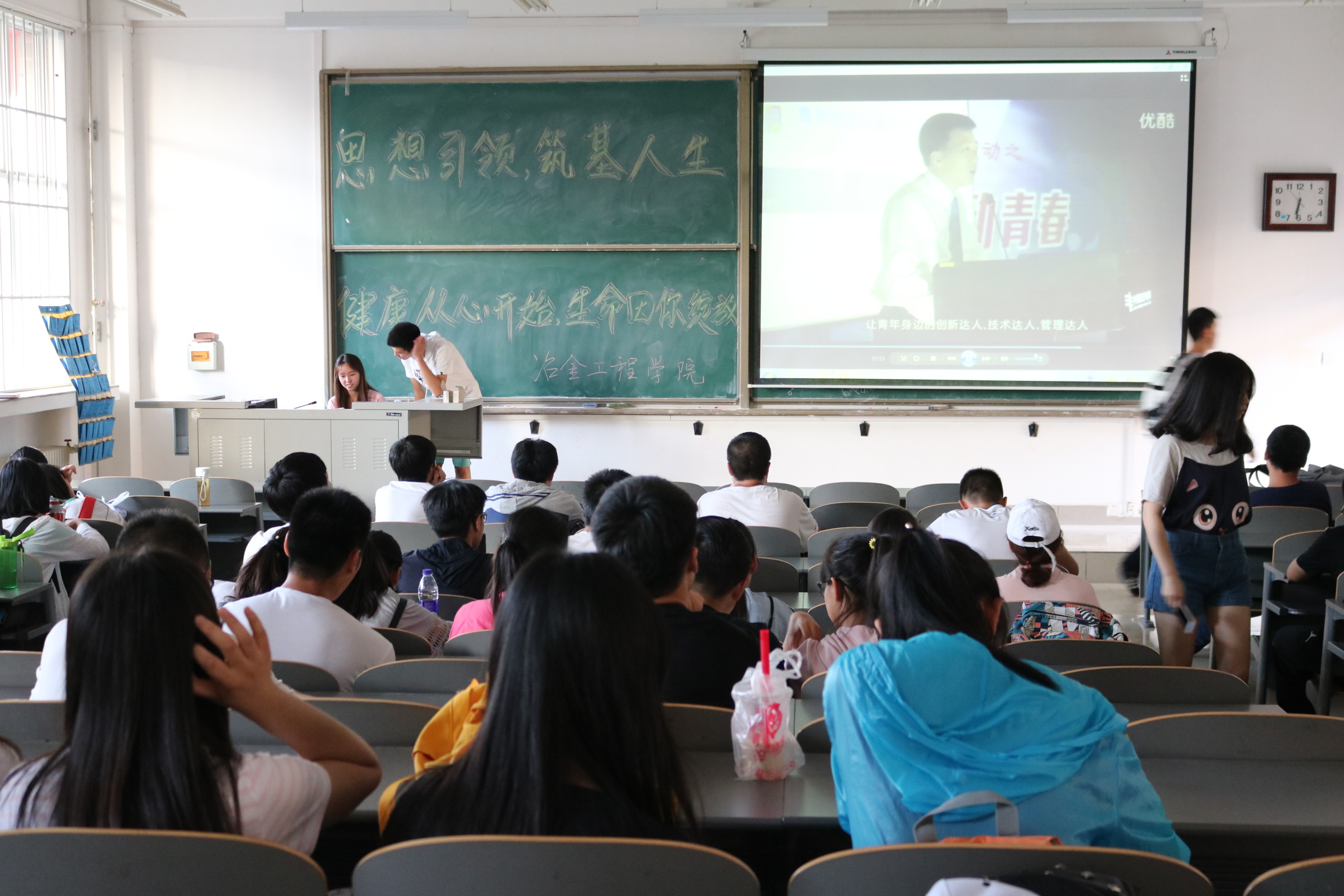 首先播放的视频以“共青团在青年心理健康方面起带头作用”为主题。始终处在潮流最前端的共青团应将“青年志、五四魂、中国梦”的意识形态依托有形化的载体展现出来,融入青年生活。同时,共青团的宣传工作就是要90后的“齐天大圣”,用坚定的理想引领青年,用榜样的力量鼓舞青年,帮助青年树立健康向上的人生观和价值观。期间,更应打造共青团的品牌活动,用品牌特效吸引、引领青年。紧接着一段简短的视频激起在座学生的热情,青年所具有的创新、热爱、坚持、劳动、求知欲与进取心展现的淋漓尽致。追逐梦想,你准备好了吗?向未来,一起来。第三个视频以手绘的方式描绘了大学四年历程:大一憧憬迷惘困惑彷徨;时光荏苒来到大二,成为学长却庸庸碌碌;大三功课繁重为梦想打拼;大四面临就业和考研的选择。崩溃与坚守,黑暗与未来,犹豫与希望,时刻在警醒我们:关注心理健康。活动以视频“一路上有你”朋友篇作为结尾,感谢一路有你,我们一起走下去。感动与温暖沁人心脾,扶持与陪伴与你同在,生命的多姿多彩因你而绽放。