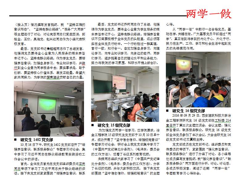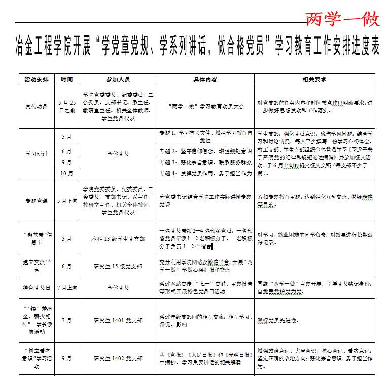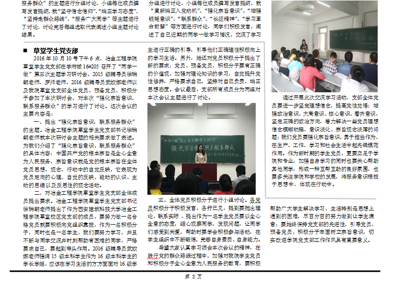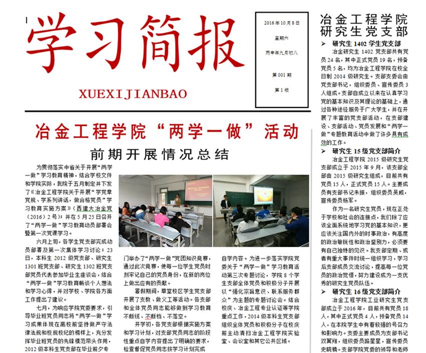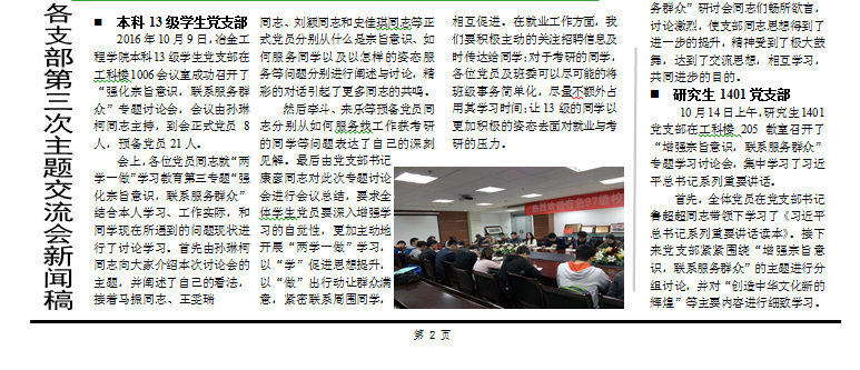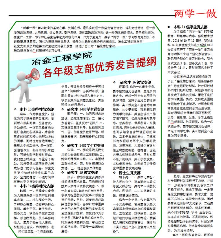 上一条:冶金2014级本科学生党支部成功召开“发挥党员作用,勇于担当作为”专题教育讨论会