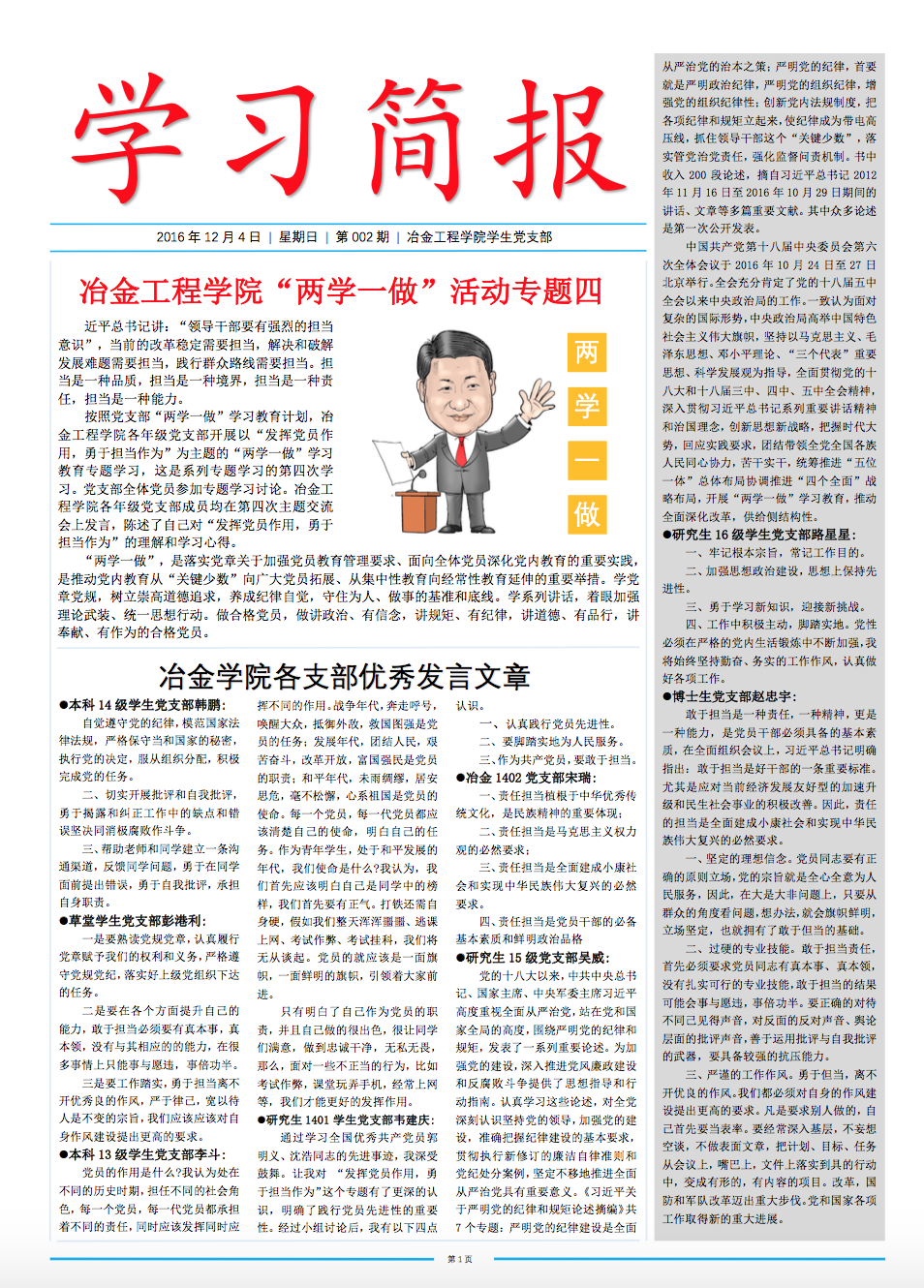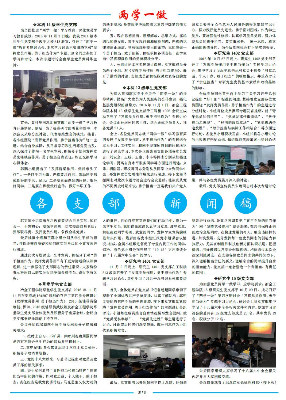 下一条:冶金2014级本科学生党支部成功召开“发挥党员作用,勇于担当作为”专题教育讨论会