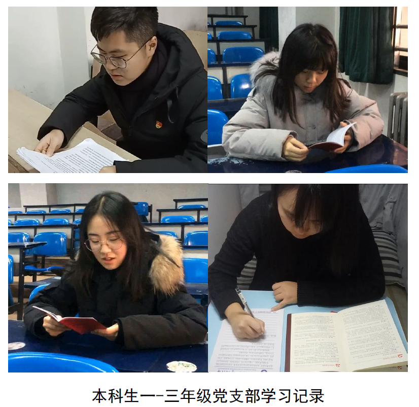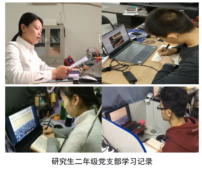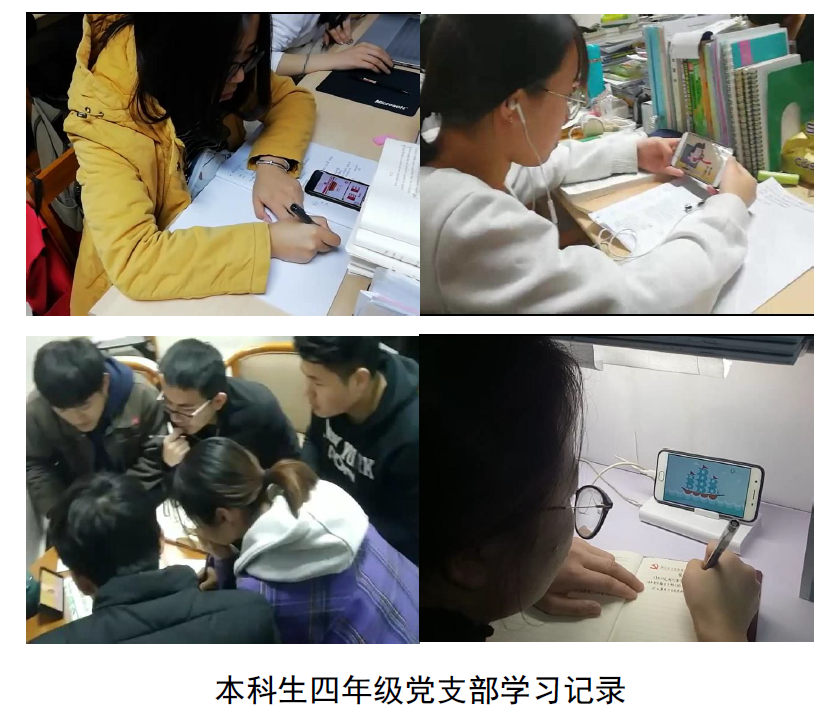 党委要求,各学生党支部组织全体党员以“学习党章党规,学习习近平系列讲话”为主要内容,以视频记录的方式,记录党员同志们学习十九大报告读本、习近平在北京大学师生座谈会上的讲话、新时代全国高等学校本科教育工作会议、全国教育大会精神并做笔记的过程,记录党员同志们观看庆祝改革开放40周年大会视频,一起讨论学习的过程,记录党员同志们面对镜头朗读党章党规的学习过程。