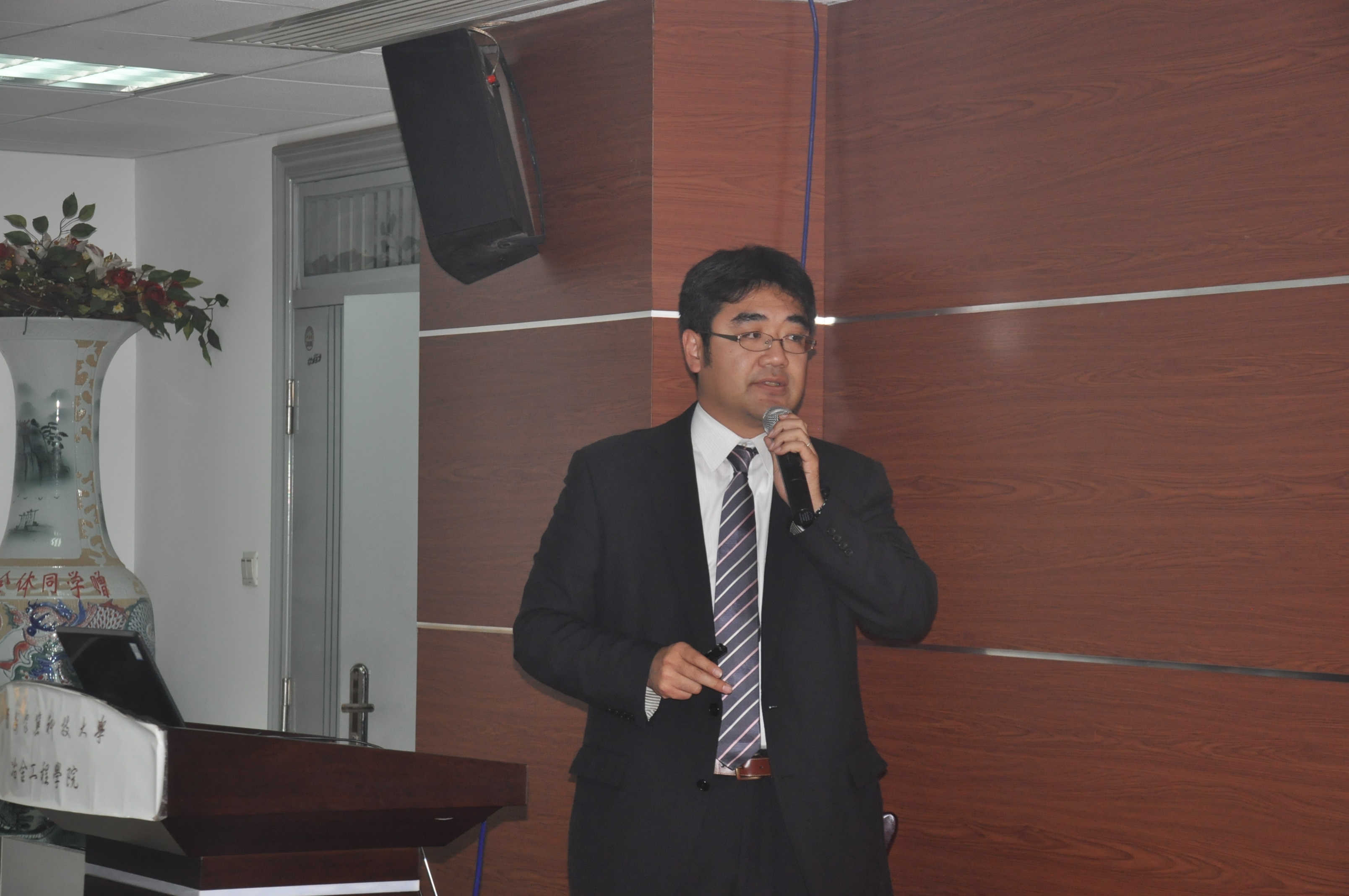 11月21日日本钢铁协会11位冶金专家在北京参加完第十三届中日钢铁学术会议后,专程来我院进行了学术交流。来自日本北海道大学的AKIYAMA Tomohiro教授和日本东北大学MIKI Takahiro教授为我校师生作了题为《Theory and Application for Recuperating Waste Heat at Steelworks》、《Thermodynamic Consideration of Oxide and Sulfide Inclusion Formation during Refining Process of Steel》的学术报告,并与幸运28论坛