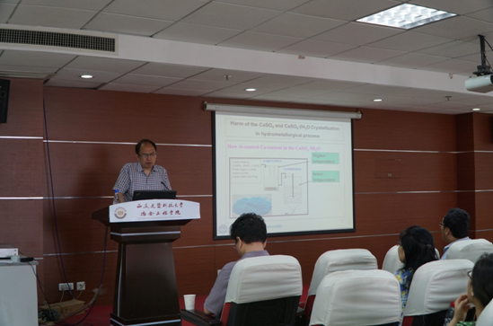 的曾德文教授来我院做学术交流,在工科楼1111为我院学生主讲关于《重金属湿法冶金过程中硫酸钙的结晶行为》的报告会。曾德文教授作为中南大学博士生导师,曾经在德国佛赖贝格工业大学无机化学研究所学习和工作,完成了德国国家科学基金(DFG)等多项课题,获理学博士学位。