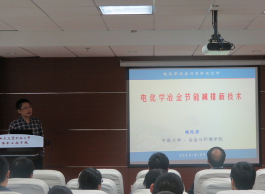 副院长赖延清教授来我院做学术交流,晚上7:30关于为我院师生作了一场关于《电化学冶金节能减排新技术》的报告会。
