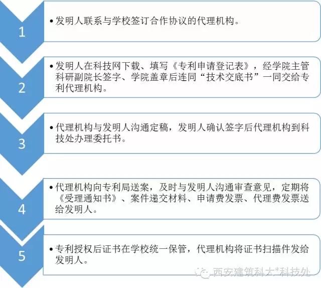 2、受资助专利的申请事宜,由我校委托的专利事务所办理,未经科技处同意,不得委托其他专利代理机构办理。