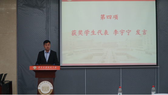 材成1602班李宇宁同学作为获奖学生代表上台发言。首先他代表全体获奖同学,向关心幸运28论坛