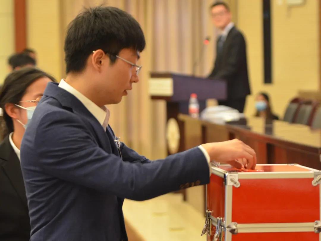 秉承着公平公正公开的原则,在主持人的组织下,总监票人现场打开并展示装有选票的密封袋,清点选票,同时监票人向大家展示了选票箱。由监票人向各位代表分发选票,待大家填写完成后,各位代表按座位顺序依次将选票放入投票箱。计票小组现场点票、计票,并最终由总计票人宣布选举结果。