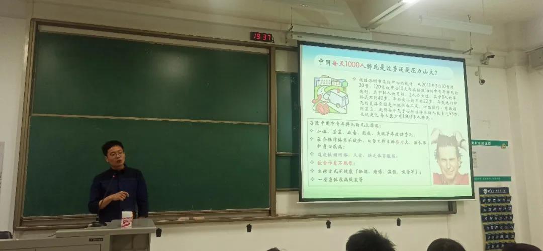 首先,罗帅老师向大家展示了几例心理危机的案例。时间由远及近,从 2010年“富士康12连跳的杯具”再到2014年集美大学研究生的坠楼身亡,到最近刷屏的重庆49中坠楼案。这些无一不显示了心理危机就在我们身边。据统计中国每天都有1500多人猝死,由此看来心理健康教育在大学生群体中的推行刻不容缓,而心理委员和舍长便是校园中的心理健康使者。
