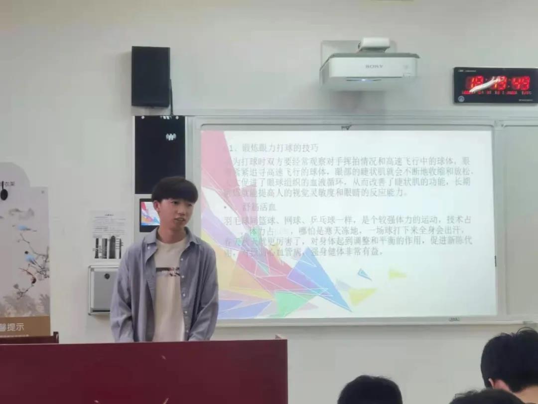 活动伊始,主持人向大家介绍了羽毛球的起源及其发展,让大家对羽毛球有了初步的认识,也激发了同学们对于羽毛球运动的兴趣,大家兴致渐增,听讲的积极性变得更高。随后,主持人向大家普及了羽毛球的具体规则,让大家对于羽毛球比赛的规则有了更深入的了解。同时,主持人还向大家介绍了一些羽毛球著名赛事,并推荐同学们关注相关教学视频,为大家可以更好的领略羽毛球的魅力提供了便利。