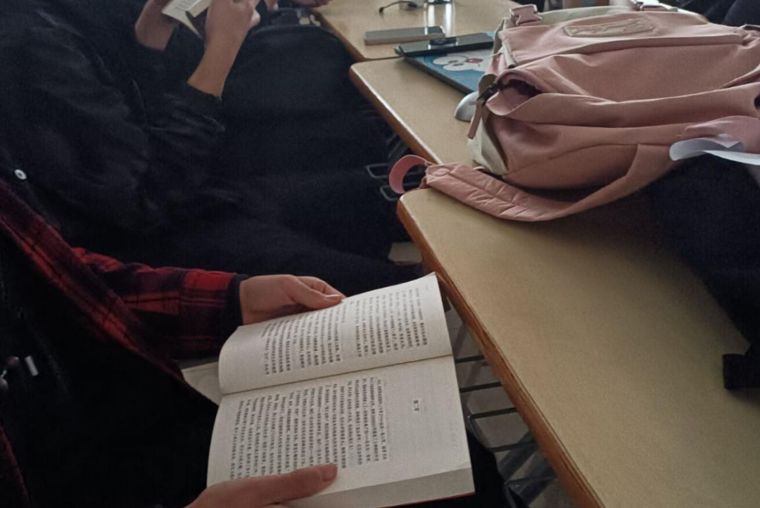 随后,主持人组织开展了“不忘初心·牢记使命”读书分享交流会,先由同学们自行选择分发的书籍阅读,然后互相分享读书心得与体会。在主持人和工作人员的引导下,同学们专注投入阅读,学习热情高涨,积极踊跃参与互动。