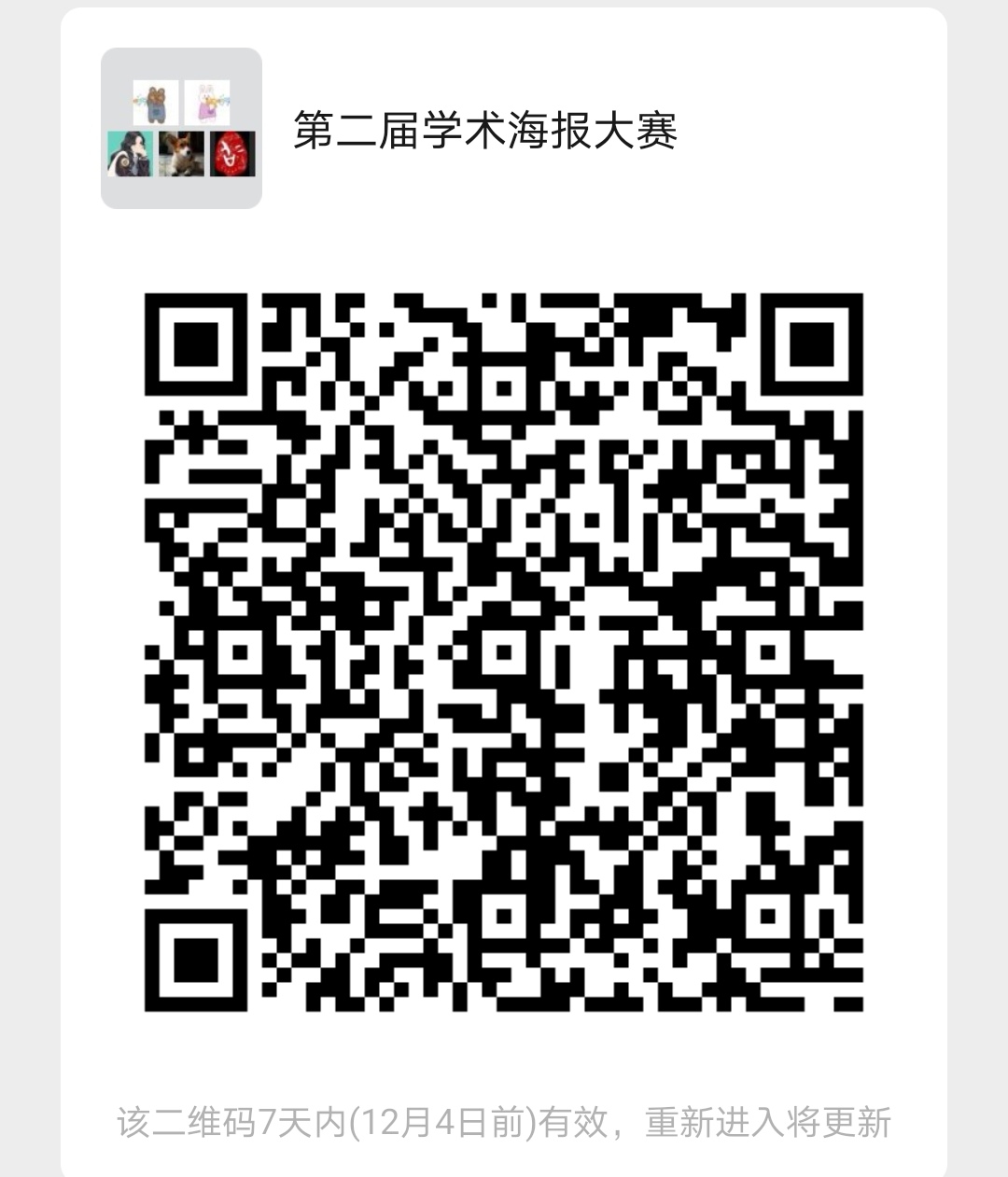 +姓名+海报题目”发送至邮箱[email protected];参赛作品提交后,参赛者需申请加入“第二届学术海报作品大赛”微信群,加群后将群昵称修改为姓名。