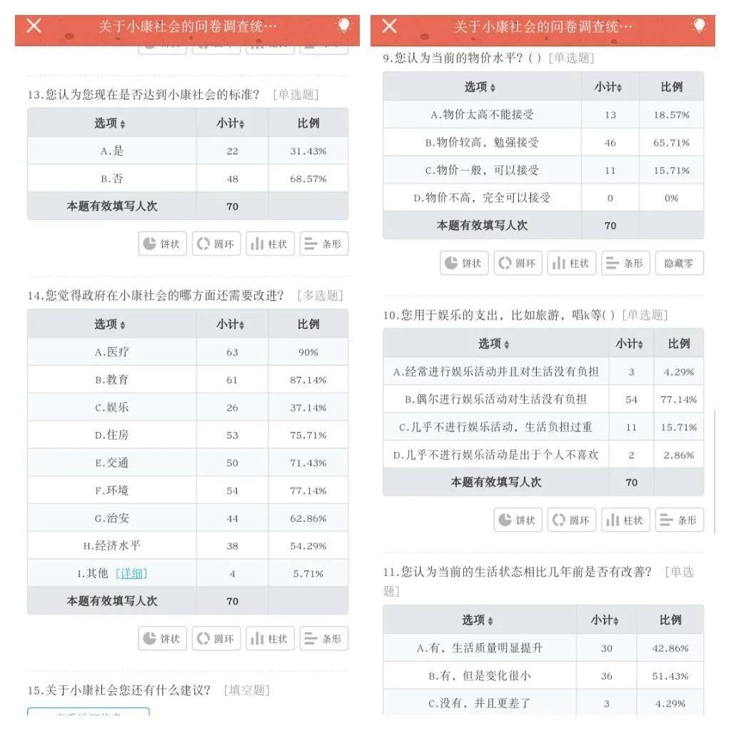 关于2020年全面建成小康社会,实践团队还做了调查问卷,以充分了解“全面建成小康社会”的成果情况。
