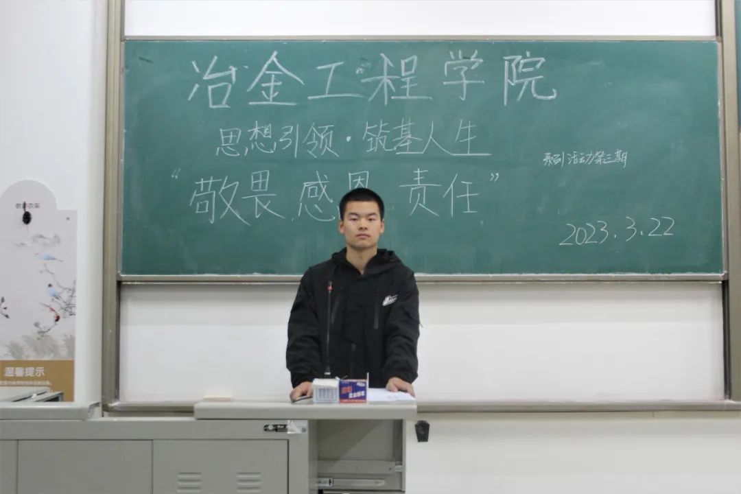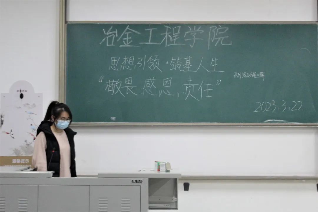 心存敬畏、懂得感恩、勇担责任是我们每个大学生应有的品质。为了让冶金青年学子对敬畏、感恩、责任进行深入地思考,提升个人素养,增强责任意识,幸运28论坛